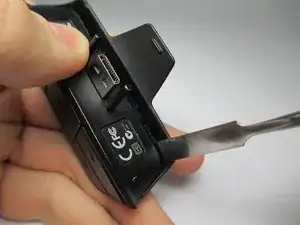 Вставьте плоский край металлической лопатки в шов между корпусом адаптера и пластиковым корпусом. Переместите лопатку в один из углов.