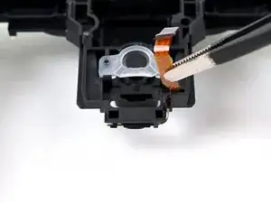 Держите сборку триггера над контроллером, используйте пинцет, чтобы отключить ленту триггера, схватившись за тянущую метку и потянув от разъема.
