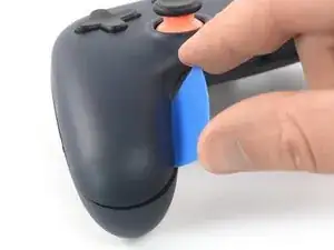 Вставьте инструмент Jimmy в зазор между передней и задней частью корпуса по правому краю правой рукоятки контроллера.