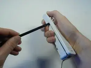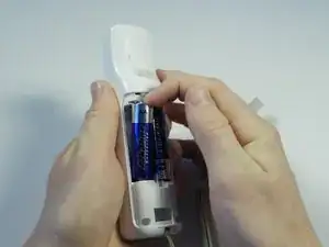 Переверните контроллер Wii так, чтобы крышка батарей находилась к вам лицом.