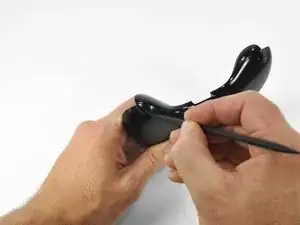 Вставьте лопатку между передней и задней панелями вдоль левого края контроллера.