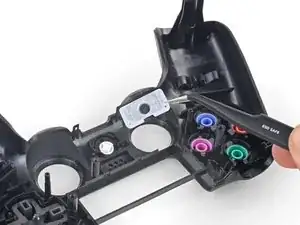 Используйте пальцы или пинцет, чтобы снять три силиконовые проводящие прокладки с кнопок контроллера.