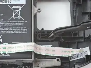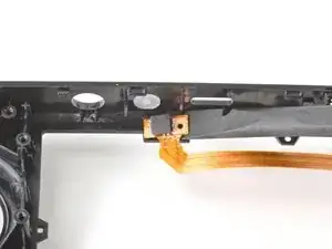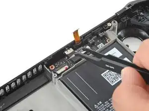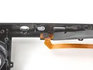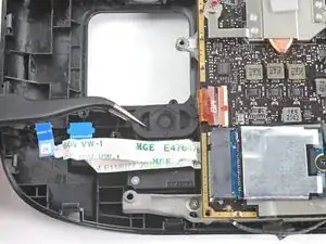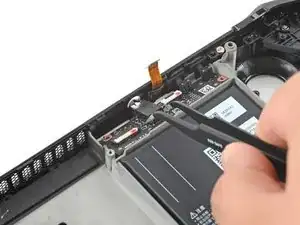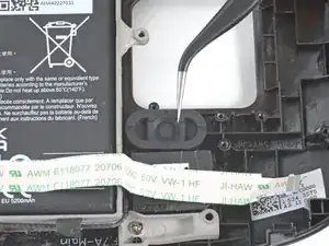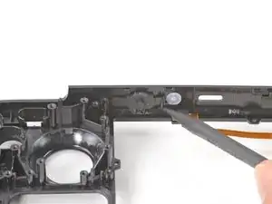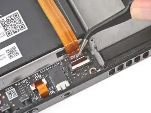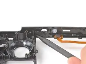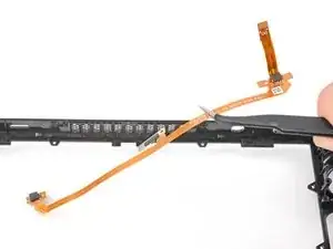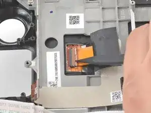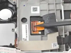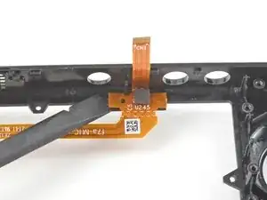 Используйте заострённый конец лопатки, чтобы приподнять маленький фиксирующий язычок на ZIF-разъёме межплатного кабеля платы кнопок.