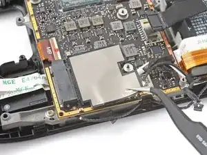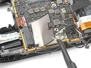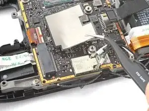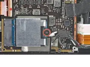 Используйте пинцет, чтобы снять кусочек фольгированной ленты, закрывающей скрытый винт на щите платы.
