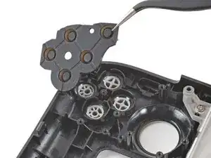 Используйте пинцет, чтобы снять четыре кнопки действий: A, B, X и Y.