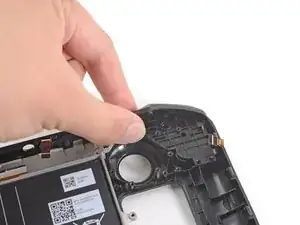 Поверните лопатку вверх, чтобы отделить динамик от лёгкого клея, прикрепляющего его к передней части корпуса.