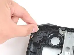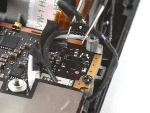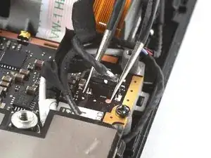 Используйте заострённый конец лопатки, чтобы приподнять маленький фиксирующий язычок на ZIF-разъёме кабеля аналогового стика.
