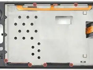 Используйте крестовую отвертку, чтобы выкрутить шесть винтов 2.3 мм, фиксирующих среднюю рамку к передней панели, расположенных на передней стороне.