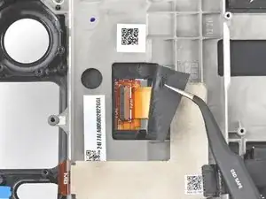 С помощью пинцета отогните наклейку, закрывающую разъём дисплея.