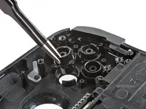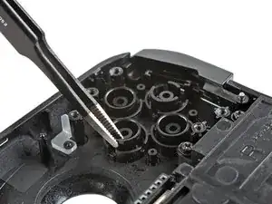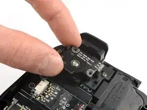 Отвинтите два винта длиной 4,4 мм, фиксирующие плату триггеров, крестовой отвёрткой Phillips #0.