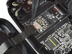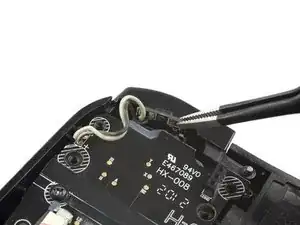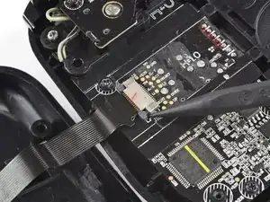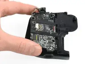Используйте пинцет с притуплёнными концами, чтобы вытащить плату плечевой кнопки.