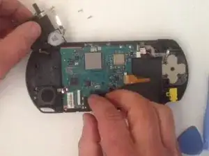 Отсоединяю переключатель UMD с помощью отвертки, чтобы проверить лазер.