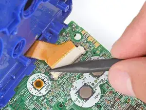 С помощью пинцета аккуратно вытяните кабель экрана из его гнезда.