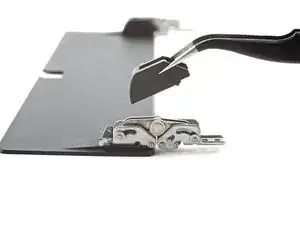 Используйте отвертку Phillips, чтобы вынуть четыре винта длиной 2.3 мм, закрепляющие петли к подставке.