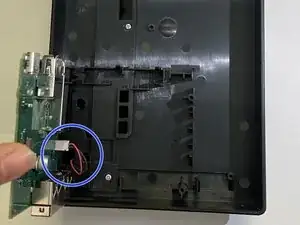 Аккуратно отключите красно-черный кабель, соединяющий плату с корпусом дока.