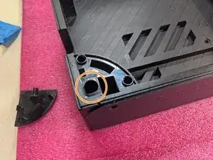 Если у вас OLED-док, нижний левый винт скрыт под пластиковой крышкой (2-е фото, красный). Чтобы снять эту крышку, сначала открутите винт на днище дока (2-е фото, оранжевый). Снимите его, затем снимите крышку с помощью лопатки или ногтя, после чего можно удалить последний Y-винт (3-е фото, оранжевый).