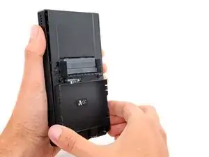 Используйте кончик лопатки или чистый ноготь, чтобы поднять поворотную фиксирующую защёлку на разъёме ZIF шлейфа платы, расположенном внизу слева от картридж-ридера.