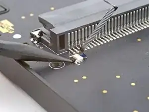 Используйте пинцет с тупыми концами, чтобы извлечь разъём аккумулятора из его гнезда в правом нижнем углу устройства.