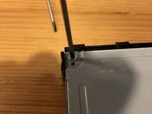 Сначала снимите наклейку/скотч с задней части привода, чтобы открыть доступ к двум другим винтам. Можно сделать это пальцами: потребуется небольшое усилие, но не слишком сильное.