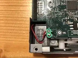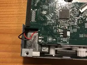 Вы увидите красный и чёрный провод, припаянные к плате.