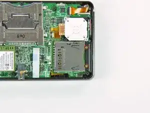 Разъём платы SD расположен под ленточным кабелем аналогового стикa (Circle Pad).