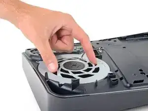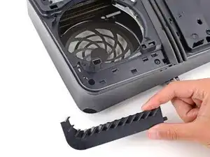 Используйте пальцы, чтобы отщёлкнуть и снять пластиковую решётку рядом с посадочным местом вентилятора.