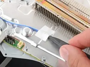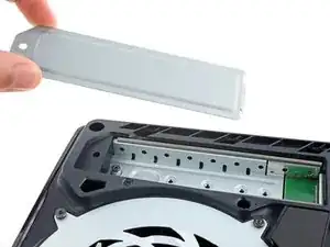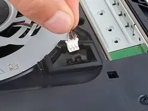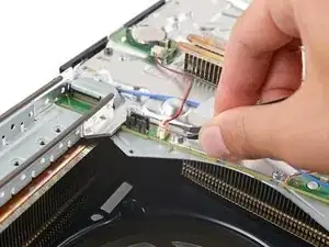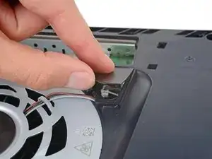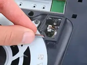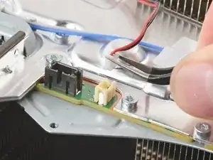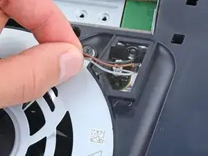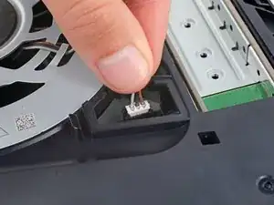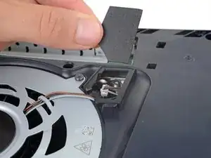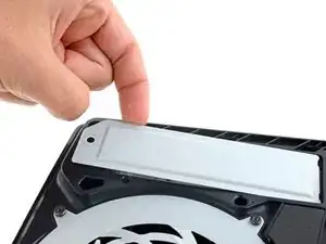 Используйте пальцы, чтобы снять пластиковую крышку, скрывающую разъём кабеля вентилятора.
