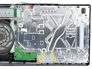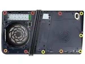 Используйте отвертку T8 Torx Security, чтобы выкрутить четыре винта, фиксирующие вентилятор: