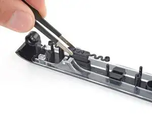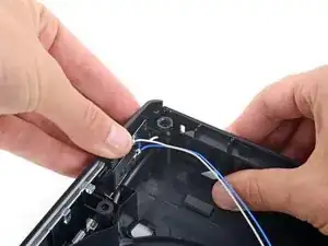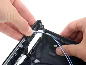 Отодвиньте оба антеннных кабеля вниз и выведите их из-под защёлки в верхнем правом углу пластикового корпуса.