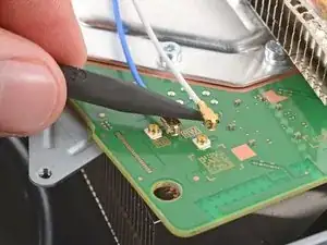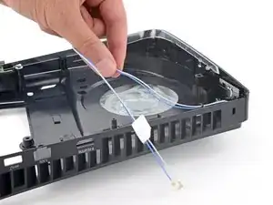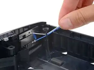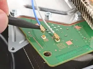 Выведите оба антеннных кабеля вверх и выньте их из защёлок вдоль заднего края вашей PlayStation.
