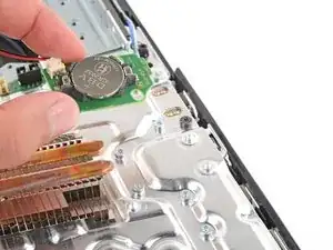 Подденьте плату CMOS пальцами с маленьких металлических выступов и потяните её к центру консоли, чтобы снять.
