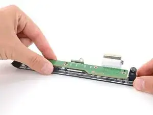 Поднимите левый нижний угол основной платы с её серого пластикового стойка. Держите плату поднятой для следующего шага.