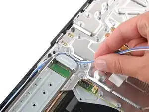 Пальцами выведите кабели антенны из их зажимов на металлическом экране.