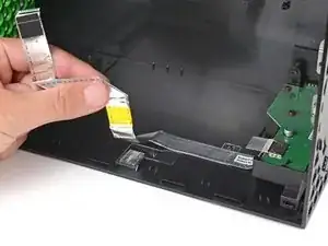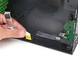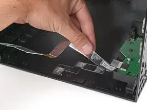 Если кабель USB-порта приклеен к металлическому шасси, используйте iOpener или фен, чтобы нагреть кабель. В зависимости от модели Xbox может потребоваться поддеть кабель лопаткой для отделения клея.