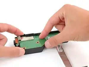 Отсоедините кабель данных от оптического привода, потянув вверх пальцами.