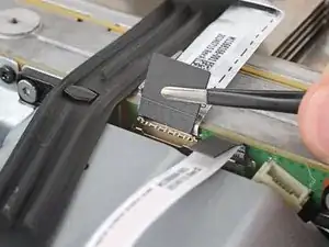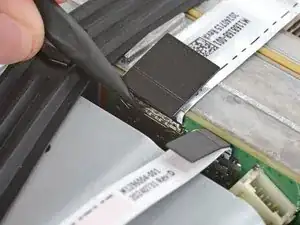 Используйте лопатку, чтобы поднять металлическую фиксирующую планку на ленточном кабеле USB‑порта.