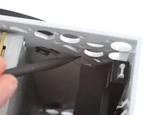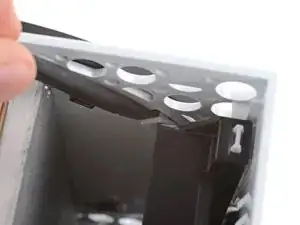 Снимите ремешок корпуса с трёх направляющих штырей и отщёлкните его от боковин блока питания.