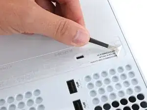 Используйте тупой пинцет, чтобы отогнуть наклейку и открыть доступ ко второму винту.