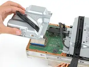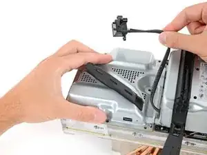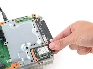 Схватите верхний правый угол антенной платы и потяните её прямо от центрального шасси, чтобы отсоединить.