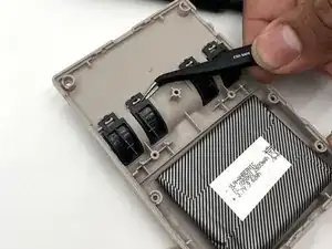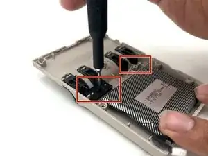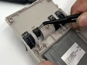 Удалите два винта Phillips размером 1 мм, которые крепят каждый из двух кронштейнов кнопок.