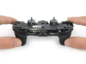 Повторите предыдущую процедуру открытия, чтобы открыть три пластиковые защёлки на внешней стороне левой ручки контроллера.