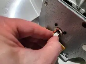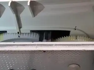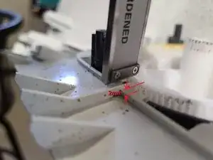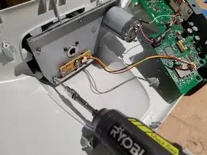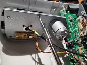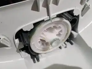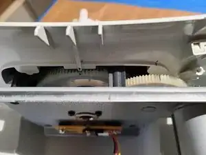 Установите моторную пластину на место, убедившись, что также совмещена метка потенциометра. Если метка сдвинулась, шестерню потенциометра на задней стороне может потребоваться слегка повернуть перед сцеплением.