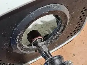 Работая дремелем по кругу, сточите уступ для внешнего обода подшипника. Двигайтесь медленно, материала немного.