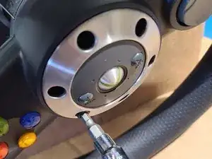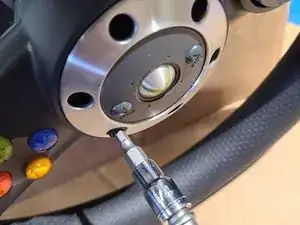 Снимите ещё 8 винтов с задней части сборки рулевого колеса, снова используя отвертку TX10 с защитным штифтом.