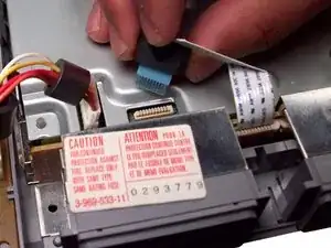 Осторожно отключите шлейф от основной платы. Для этого потяните за синюю область шлейфа рядом с разъемом.