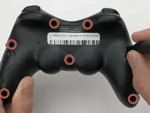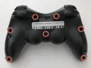 Используйте отвертку Phillips #0, чтобы открутить семь винтов по 5 мм с задней стороны контроллера.