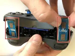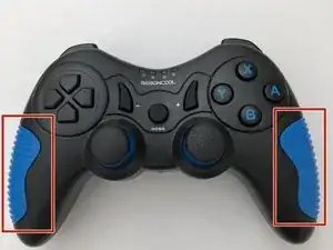 Используйте пластиковый инструмент для открывания, чтобы снять синие пластиковые захваты с боков контроллера.
