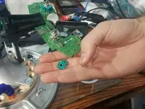 Сначала выпаяйте левый аналоговый стик.