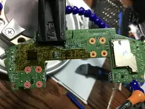 Отпаять 4 контакта, фиксирующие выводы левого аналогового стика.