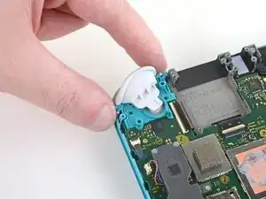 Используйте пинцет или пальцы, чтобы снять резиновую прокладку узла правой триггерной кнопки, если она не осталась прикреплённой к узлу.